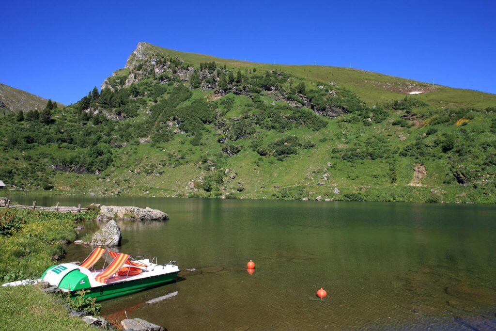 Wir liegen in herrlichster Natur „1875m über dem Alltag“ im Heidialm Bergresort am Falkert oberhalb eines idyllischen Bergsees, der zwar kein Badesee ist, aber zum Urlaub machen und Erholen einfach herrlich.